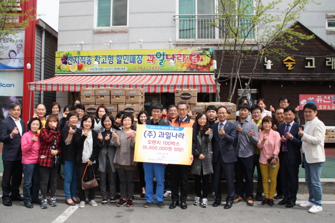(주)과일나라(대표 박정근)는 16일 오후 2시 이웃사랑실천을 위해 (재)광양시사랑나눔복지재단(이사장 서경석)에 오렌지 100박스(6,000,000원 상당)를 전달했다.