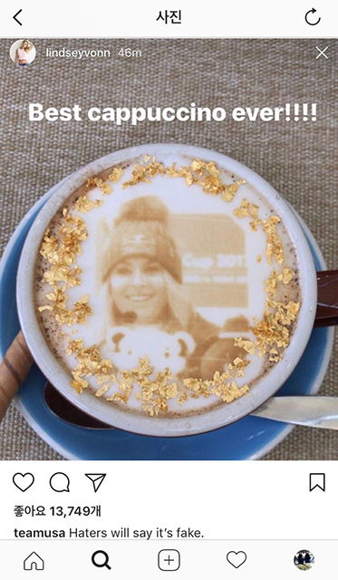 17일 하이원리조트에 따르면 스키여제 린지본 선수의 얼굴이 재현된 더가든의 커피 사진이 미국올림픽위원회 SNS 계정에 올라오면서 시작됐다.