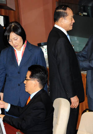 | ▲ 뒤돌아 선 박지원 전 원내대표와 이상득 의원 ⓒ뉴시스 |