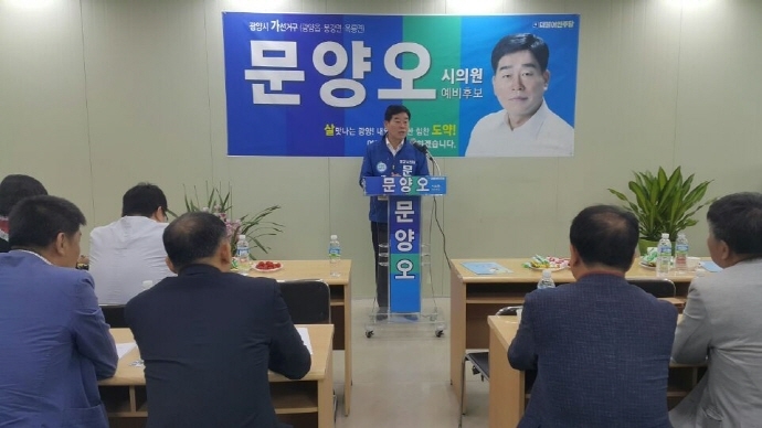 문양오 광양시의원 예비후보(더불어민주당 광양시 가선거구)가 17일 오전 11시에 예비후보 사무소에서 공약을 발표하는 기자회견을 열었다.