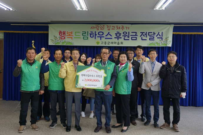 고흥군새마을회(회장 목용상)는 4월17일 '행복드림하우스' 후원금 200만원을 남양면사무소와 점암면사무소에 각각 전달하였다.