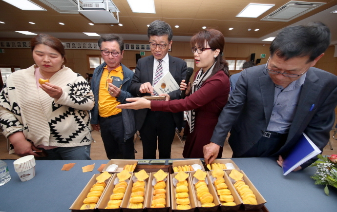 지난 18일 강진군이 대회의실에서 황가오리빵 상품 출시에 앞서 자체 직원 품평회를 가졌다. 군은 황가오리빵 개발 2주년에 앞서 그 동안의 운영결과를 통해 부족한 점을 개선하고자 2018 황가오리빵 개선 지원 사업 추진 중에 있다.