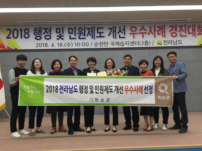 화순군(군수 구충곤)이 18일 순천만 국제습지센터에서 열린 행정 및 민원제도 개선 우수사례 경진대회에서 우수상을 수상했다.
