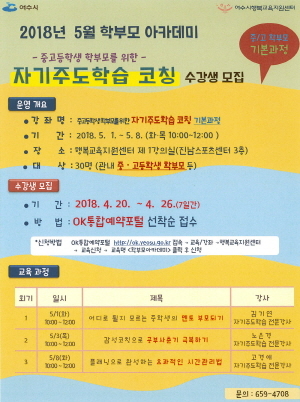 일정은 다음 달 1일, 3일, 8일이며 여수시행복교육지원센터 제1강의실에서 진행된다.