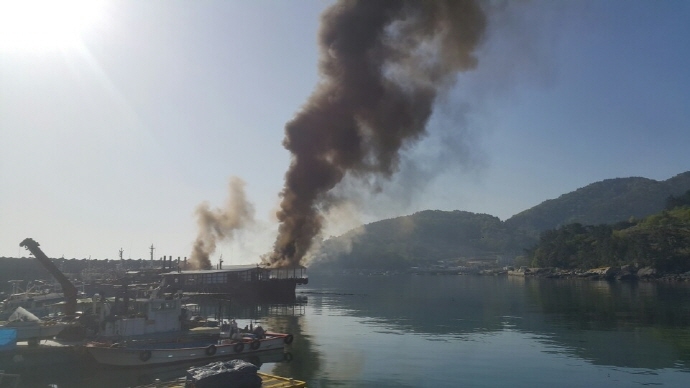 21일 오전 8시 10분경 여수시 돌산읍 대율선착장에 정박 중인 100톤급 어선에서 화재가 발생했다.