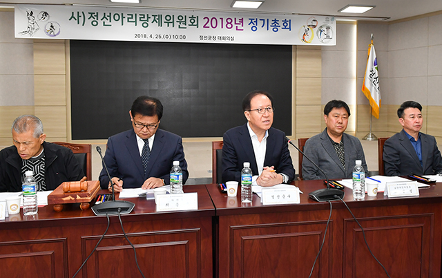 (사)정선아리랑제위원회는 25일 강원 정선군청 대회의실에서 전정환 정선군수, 최종천 위원장, 관계자 등이 참석한 가운데 2018년도 정기총회를 개최했다.