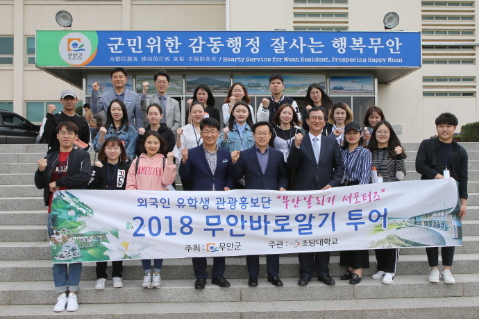 초당대학교에 재학 중인 중국, 베트남, 우즈베키스탄 유학생 20명으로 구성된 ‘외국인 유학생 관광홍보단’은 페이스북, 웨이보 등 각종 소셜네트워크 서비스(SNS)매체를 통해 무안연꽃축제, 무안황토갯벌축제 등 지역축제는 물론, 관광지, 맛집, 특산품 등을 현지에 알리는 데 앞장서게 된다.