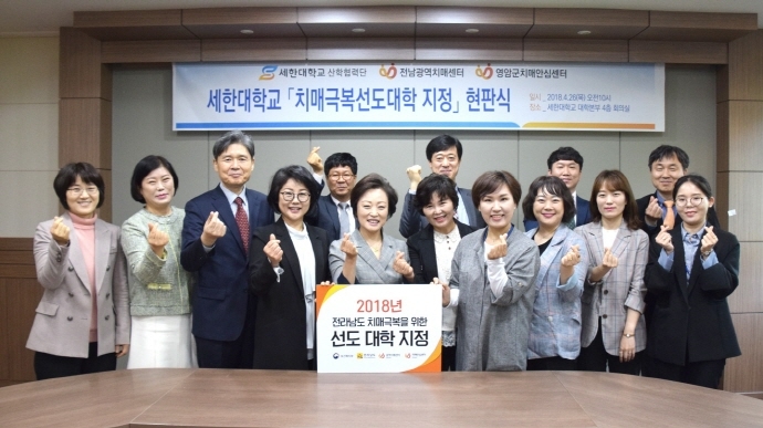 세한대학교는 도내 세 번째 치매극복선도대학으로 지정되어 보건복지부와 중앙치매센터에서 인증 번호를 부여 받고 현판 전달을 받음으로써 지역사회 내 치매 극복과 예방을 위한 파트너가 되었다는데 큰 의미가 있다.