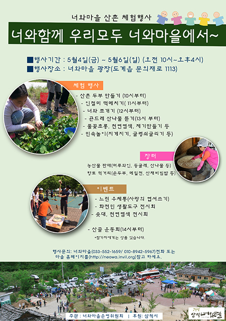 강원 삼척시 너와마을에서는 어린이날을 맞아 5월 4일부터 6일까지 도계읍 너와마을 광장에서 ‘너와마을 산촌체험 이벤트’를 개최한다.