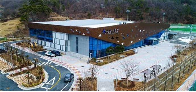 오림동 진남체육공원에 위치한 진남수영장은 지하 1층, 지상 2층, 연면적 6496㎡ 규모다.