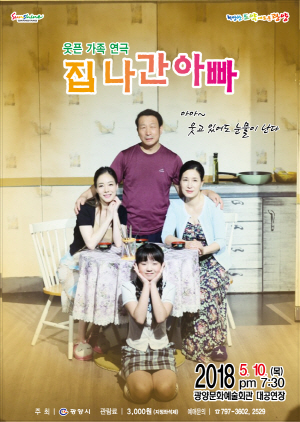 연극 ‘집나간 아빠’는 가족을 위해 세상의 온갖 굴욕과 고통을 묵묵히 감수하며 싸우지만, 내색하지 않고 묵묵히 감내하며 희생하는 우리 아버지의 슬픈 뒷모습을 그린 작품이다.