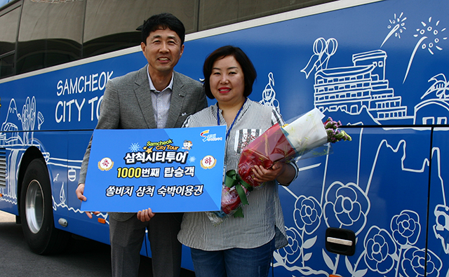 강원 삼척시는 2018 삼척방문의해를 맞아 올해 시티투어 1000번째 탑승객이 1일 탄생해 축하이벤트를 가졌다.