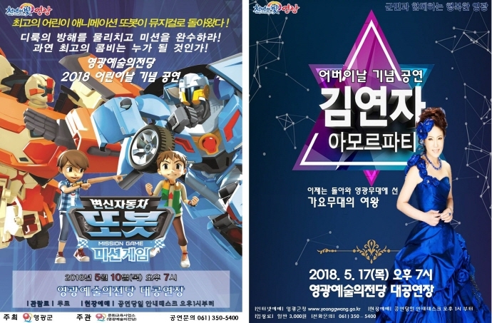 영광군은 가정의 달 5월을 맞이하여 온 가족과 함께 보고 듣고 감상할 수 있는 특별기획 공연과 전시회 계획을 밝혔다.