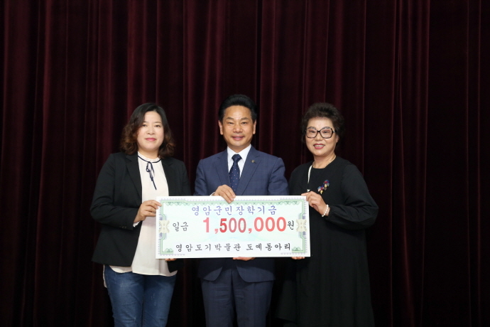 영암도기박물관 도예동아리(회장, 설순옥)는 지난 5월 2일 회원들의 도예작품 판매 수익금을 영암군민장학회에 장학금으로 기부하였다.