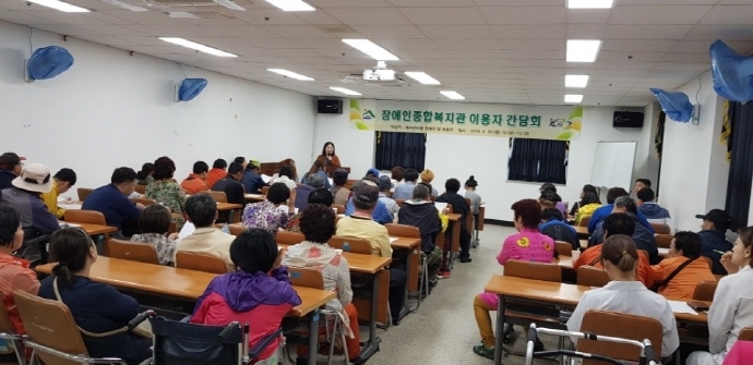 영암군종합사회복지관(군수 전동평)에서는 지난 4월 30일 장애인종합복지관 이용자와 보호자 60여명이 참석한 가운데 2018년 상반기 장애인복지관 이용자 간담회를 개최하였다.