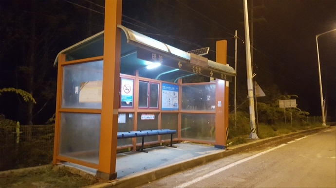 버스승강장 태양광 LED 조명장치는 승강장 안 천장에 LED조명등을 설치하여 주민들의 편안하고 안전한 야간 대중교통 이용과 안전사고 예방을 위해 설치됐다.