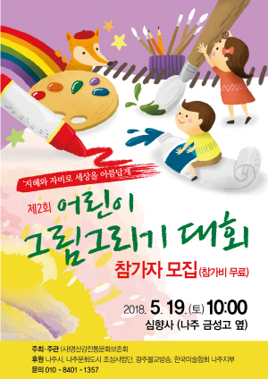 한편, 제 2회 어린이 그림 그리기 대회는 영산강전통문화보존회가 주최·주관하며, 나주시, 한국미술협회 나주지부, 나주문화도시조성사업단, 참교육 학부모회 나주지회, 광주불교방송이 후원한다.