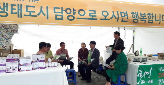 담양군귀농귀촌지원센터는 ‘생태도시 담양으로 오시면 행복합니다’ 슬로건으로 담양군의 우수한 정주여건을 소개하고 주요 농작물 재배여건 및 창업자금 활용방안에 대해 적극 홍보했다.