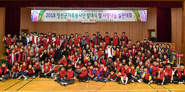 강원 정선군자원봉사센터는 지난 12일 정선 봉양초등학교 비봉관에서 전정환 정선군수, 박옥순 정선군자원봉사센터 소장, 가족봉사단 등이 참석한 가운데 2018 정선군가족봉사단 발대식 및 사랑나눔 실천대회를 개최했다.