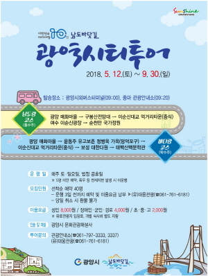 투어는 홀수 주에는 ‘남도랑 코스’(광양~여수~순천), 짝수 주에는 ‘바다랑 코스’(광양~보성)로 구성해 각각 최대 40명씩 모집하며, 문화관광해설사가 동행하는 가운데 광양의 주요 관광지와 여수, 순천, 보성을 방문하는 일정으로 진행된다.