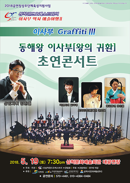 강원 삼척시가 2018년 공연장 상주단체 육성지원 사업의 일환으로 오는 19일 오후 7시 30분 삼척문화예술회관 대공연장에서 동해왕 이사부 ‘왕의 귀환’초연 콘서트를 선보인다.