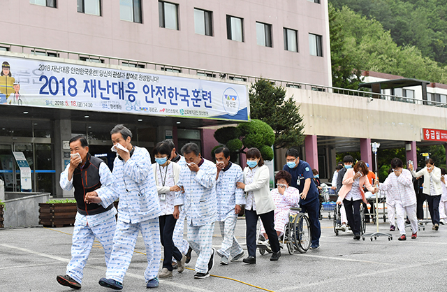 강원 정선군은 18일 근로복지공단 정선병원에서 신주호 정선부군수, 소기웅 정선소방서장, 유관기관・단체 등 300여 명이 참여한 가운데 ‘2018 재난대응 안전한국훈련’을 실시했다.