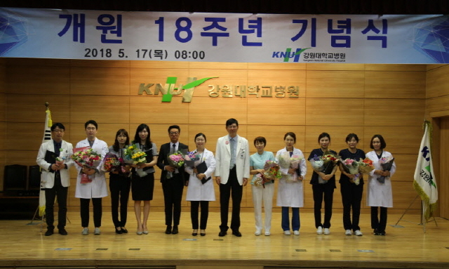 강원대학교병원은 지난 17일 암노인센터 6층 대강당에서 개원 18주년을 자축하는 기념식을 했다.