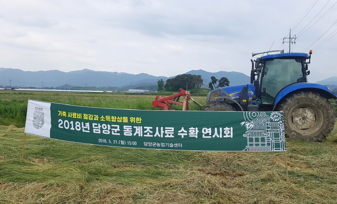 담양군은 지난 21일 고서면 동운리 일원에서 가축분뇨 활용 사료작물 재배단지 조성 및 자연순환농업 재배기술 조기정착을 위한 ‘2018년 동계 조사료(IRG) 수확연시회’를 개최했다.