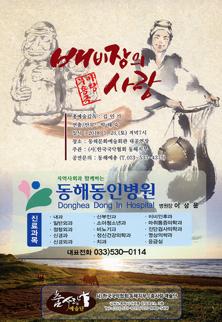 (사)한국국악협회 동해지부에서 주최 주관하고 동해시와 동해예총이 후원하는 이번 공연은 고전소설 ‘배비장전’을 모티브로 하고 있다.
