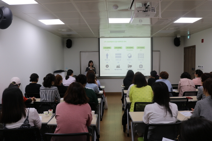 광양희망도서관에서 5월부터 11월까지 총 여섯 차례에 걸쳐 운영되는 '북스타트 부모교육' 특강의 제 1강 '제 4차 산업혁명을 준비하는 엄마표 미래교육'이 5월 16일 수요일 오전 10시 도서관 배움교실에서 약 30여명의 참가자와 함께 운영되었다.