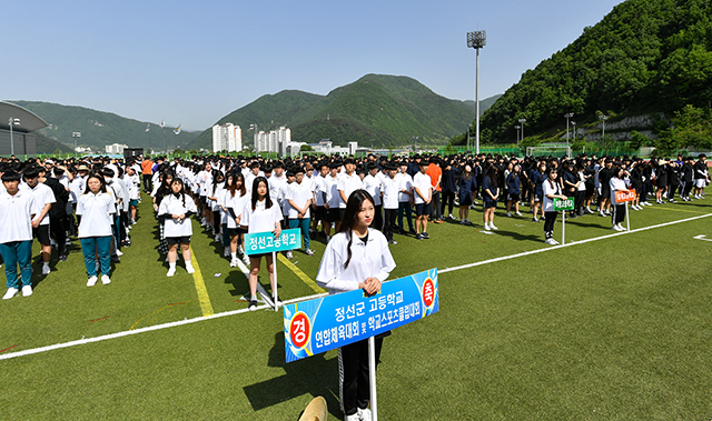 제15회 정선군 고등학교 연합체육대회 및 학교스포츠클럽 대회가 24일 강원 정선종합경기장과 보조구장에서 지역 내 7개 고교 학생, 교직원 등 1000여 명이 참가한 가운데 열렸다.