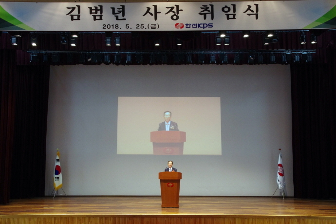 발전설비 정비 전문회사인 한전KPS(주) 제14대 사장으로 선출된 김범년 사장의 취임식이 5월 25일 광주전남혁신도시(나주시 소재)에 위치한 본사 빛가람홀에서 개최됐다.