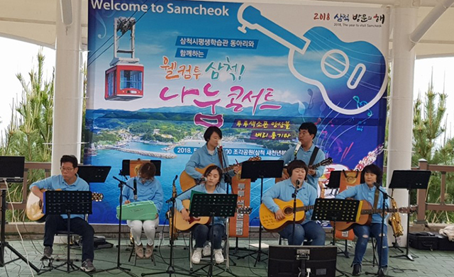‘웰컴투 삼척! 나눔콘서트’는 삼척시 평생학습관 학습동아리 주관으로 삼척시의 대표관광지를 찾아 볼거리와 즐길거리 제공으로 관광활성화 및 낭만적인 삼척이미지를 홍보하는데 앞장서고 있다.