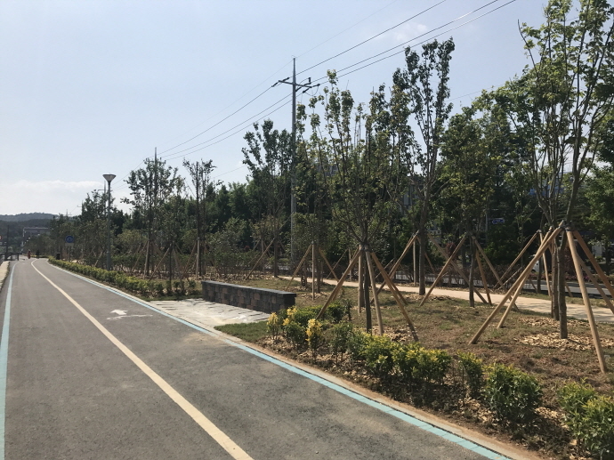 시는 사업 추진에 앞서 2016년에 자전거도로를 먼저 개통하고, 지난해 10월부터 8억 원의 예산을 투입해 수목 3만 4천여 그루, 초화류 3만 8천본을 식재했다.