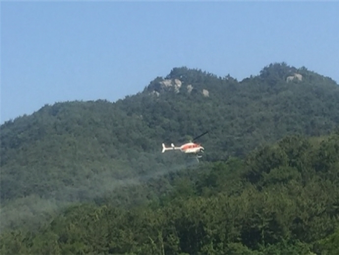 시는 산림청 산림항공관리본부로부터 중형헬기(Bell L-3)를 지원받아 오전 6시부터 11시까지 1차(5.31~6.1), 2차(6.14~6.15), 3차(6.27~6.28)로 나눠 방제를 진행한다.