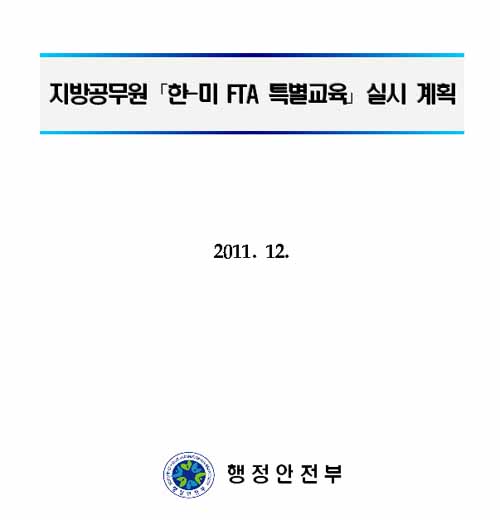 국회 행정안전위 소속 통합진보당 조승수 의원이 행정안전부로부터 20일 제출받은 '지방공무원 한미FTA 특별교육 실시 계획 통보' 공문에 따르면 행안부는 "한미FTA 비준(11.11.22)에 따라 지방자치단체 공무원들이 FTA 의미와 효과를 올바르게 이해하고 인식할 수 있도록 지방공무원을 대상으로 특별 시책교육을 실시하고자 한다"고 밝히고 있다.