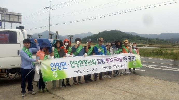 안양면에선, 2017년 가을부터 관내 기관·사회단체가 연합하여, 면내 8개 소공원을 가꾸었으며, 금년 4월에는 홍거천 주변 쓰레기를 청소하는 등 지속적으로 환경정비 활동을 추진하고 있다.