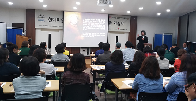 미술평론가이며, 2018 강원국제비엔날레 예술 총감독인 홍경한 강사는 미술에 관한 해박한 지식과 쉬운 설명으로 이번 강연 참가자들의 큰 호응을 이끌어냈다.