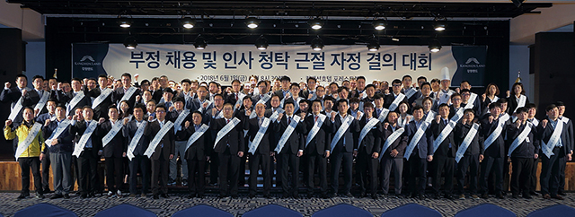 강원랜드는 1일 강원랜드 컨벤션호텔 포레스트 볼룸에서 문태곤 대표이사를 비롯한 임직원 400여 명이 참석한 가운데 ‘부정 채용 및 인사 청탁 근절 자정 결의 대회’를 가졌다.