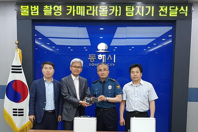 강원 동해시(동해시장 권한대행 김종문)는 홍익대 누드모델 불법카메라 촬영 범죄 이후 청와대 국민청원과 이철성 경찰청장의 몰카 범죄에 대한 강력 대응 발표에 발맞추어 불법 카메라 촬영을 탐지하는 장비 2대를 동해경찰서에 전달했다.