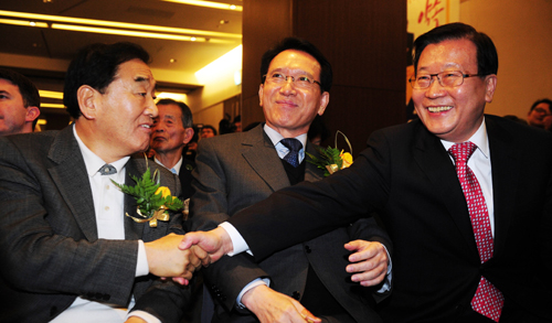 | ▲ 9일 정몽준 전 대표 출판기념회에서 만난 이재오 의원과 박세일 이사장 ⓒ뉴시스 |