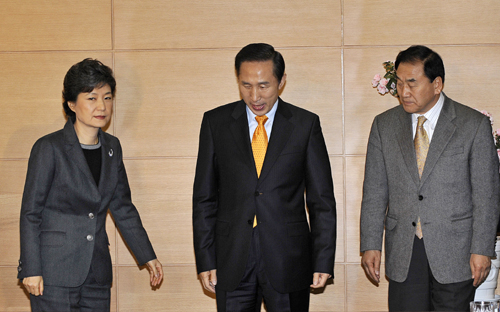 | ▲ 박근혜 위원장과 이명박 대통령, 그리고 이재오 의원 ⓒ뉴시스 |