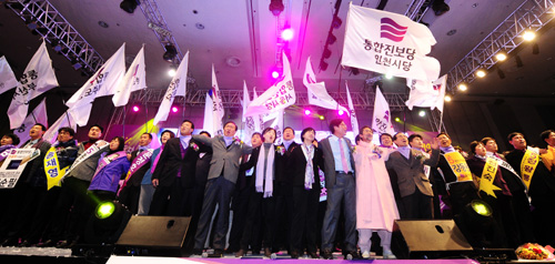 이정희 공동대표는 이날 연설에서 "통합진보당은 이명박 정부 심판에 앞장서고, 야권연대를 흔들림 없이 추진해 새누리당과의 1대일 구도를 형성하겠다"며 "이번 총선에서 30석 이상의 안정적인 원내교섭단체를 만들겠다"고 밝혔다.