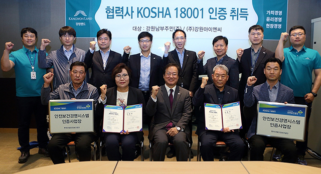 강원랜드(대표 문태곤)는 객실 및 시설관리 등을 담당하고 있는 강원남부주민㈜과 ㈜강원아이엔씨가 안전보건경영시스템(KOSHA 18001) 인증을 획득했다고 25일 밝혔다.