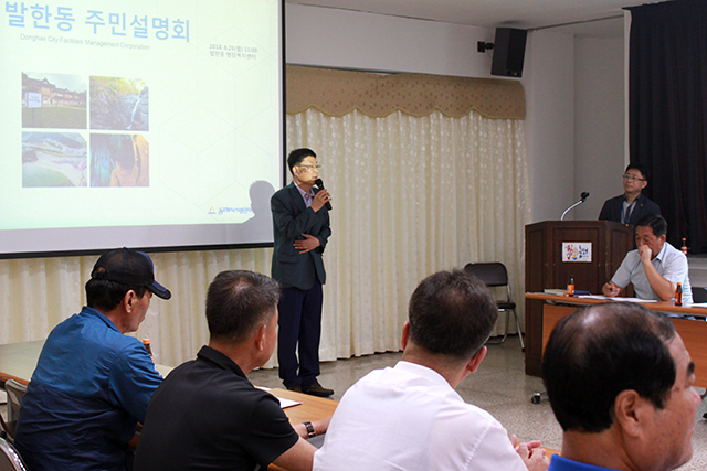 강원 동해시 시설관리공단(이사장 장덕일)은 지난 25일 발한동 행정복지센터 회의실에서 공단의 현황과 성과를 발표하는 주민설명회를 가졌다.