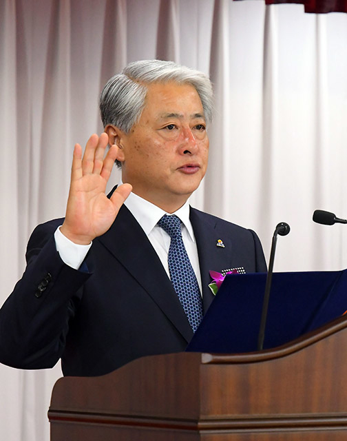 재선에 성공한 김양호 강원 삼척시장은 지난 2일 시청 대회의실에서 열린 취임식에서 민선7기 ‘민생 1번, 경제 1번, 관광 1번’의 대한민국 최고의 명품도시 삼척을 만들어 나가겠다고 천명했다.