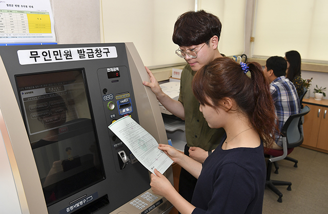 무인민원발급창구에서 발급 가능한 서류는 주민등록, 토지, 지적, 건축, 차량, 농촌, 지방세, 병무, 부동산 등 총 85종의 민원서류 발급이 가능하다. 민원창구 보다 최대 50% 감면된 수수료로 주민등록번호 및 지문인식으로 발급할 수 있다.
