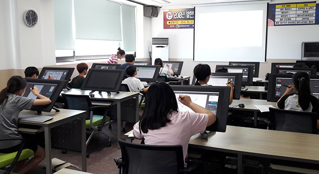 현재 초등학생을 대상 웹툰 체험하기와 중학생의 자유학년제 수업과 연계한 웹툰창작 프로그램을 지난 6월부터 8월까지 매주 토요일 마다 운영 중이다. 수강생들의 참여와 관심도가 매우 높다.