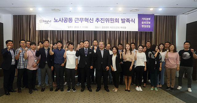 강원랜드(대표 문태곤)와 강원랜드노동조합(위원장 송인태)은 17일 하이원콘도 마운틴플라자 목련홀에서 ‘노사공동근무혁신추진위원회’ 발족식을 가졌다.