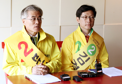 | ▲ 문재인 민주통합당 상임고문은 1일 민간인 불법사찰의 80%가 참여정부 당시 이뤄졌다는 청와대의 주장과 관련, 유세 중이던 김경수 후보와 함께 김해 내동의 한 카페에서 긴급 기자회견을 열고 "청와대가 무서운 거짓말을 하고 있다"며 정면으로 반박했다. ⓒ뉴시스 |